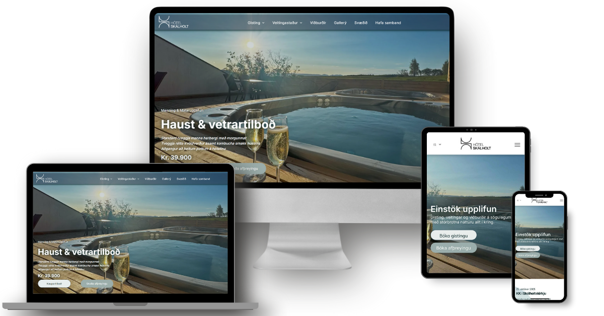 Við hönnum fallega og notendavæna vefi sem auka sýnileika, traust og sölu. Hafðu samband og fáðu ókeypis uppkast af nýju útliti sérsniðið að þínu vörumerki.